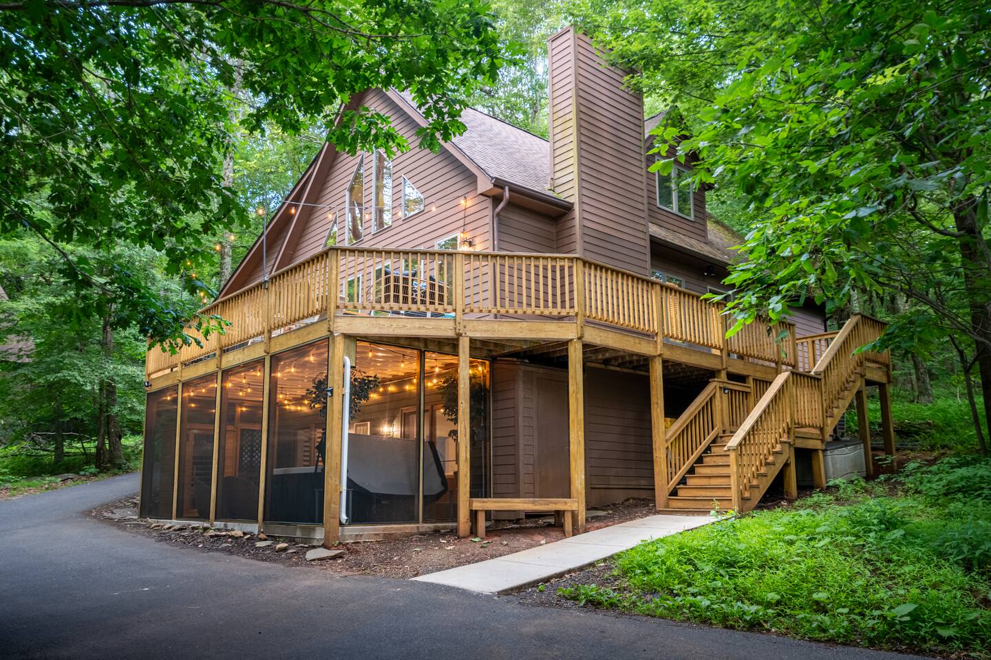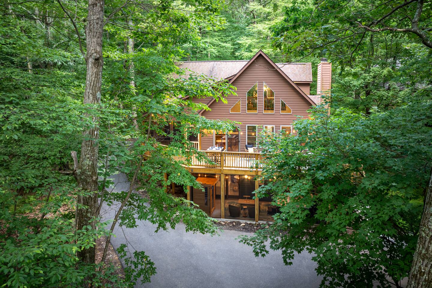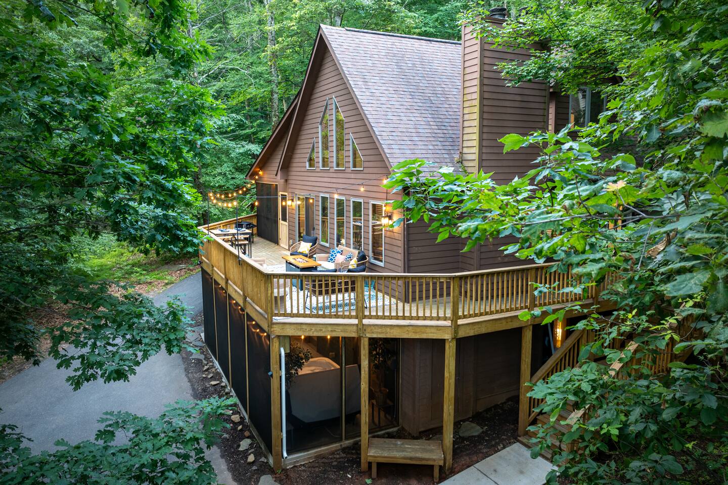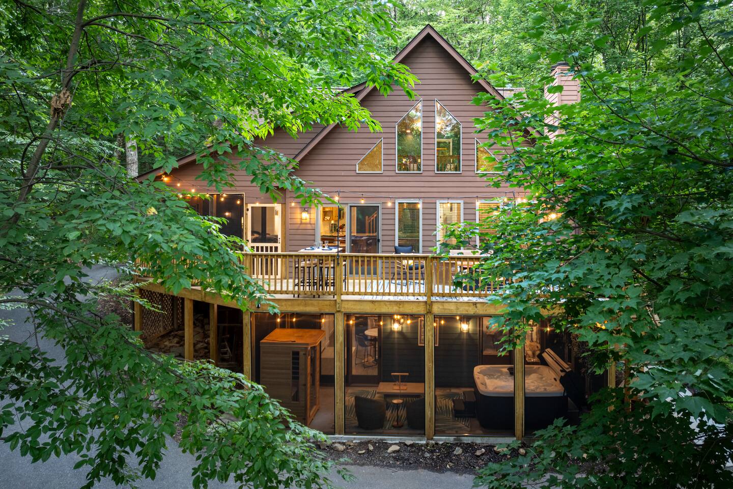 "Blue Ridge Bliss" is thoughtfully appointed to ensure your stay is enveloped in comfort: ✔ 2 Homes with plenty of space for large gatherings of friends and families ✔ Inviting great rooms with 3 ambient wood-burning fireplaces ✔ 2 Modern kitchens and a kitchenette, recently updated, complete with culinary essentials ✔ Multiple indoor and outdoor dining spaces with plenty of seating for everyone ✔ 4 bedrooms with king beds (2 with en suites) ✔ 3 secondary queen bedrooms that offer peaceful relaxation ✔ 2 playful bunk bedrooms that offer a fun space for the kids to relax. ✔ Hot tub and Sauna in screened in and covered patio accessible from the basement and an additional hot tub under the trees at Quisisana South ✔ Game room with Arcade games, Ring Toss game and Shuffleboard, additional screened in game room with ping pong, darts and foosball at Quisisana South ✔ Wet bar in basement with HD television and space to play cards ✔ Outdoor firepits with plenty of seating ✔ Tetherball and a Disc Golf hole for outdoor tournaments Guest access Unlock the full "Blue Ridge Bliss" experience with these exclusive features: ✔ Effortless check-in with keyless entry ✔ Expansive decks for leisurely outdoor moments ✔ Private hot tubs and sauna to unwind under the stars ✔ Gameroom with shuffleboard, darts and arcade games ✔ Exclusive screened in exterior game room for entertainment and fun (accessible via exterior staircase) Neighborhood Explore the enchanting surroundings of "Blue Ridge Bliss": ✔ Traverse the family-friendly Old Appalachian Trail for a nature adventure ✔ Engage in winter sports or golf, right at your doorstep ✔ Delight in local cuisine or indulge in a spa day nearby ✔ Immerse yourself in the vibrant local culture and outdoor activities Your mountain sanctuary awaits at "Blue Ridge Bliss" Book now and step into a storybook setting that's sure to become a cherished chapter in your life's adventures.