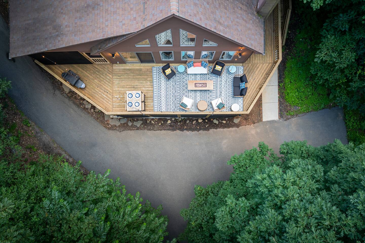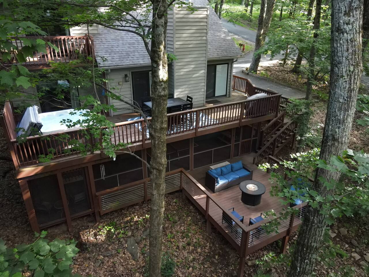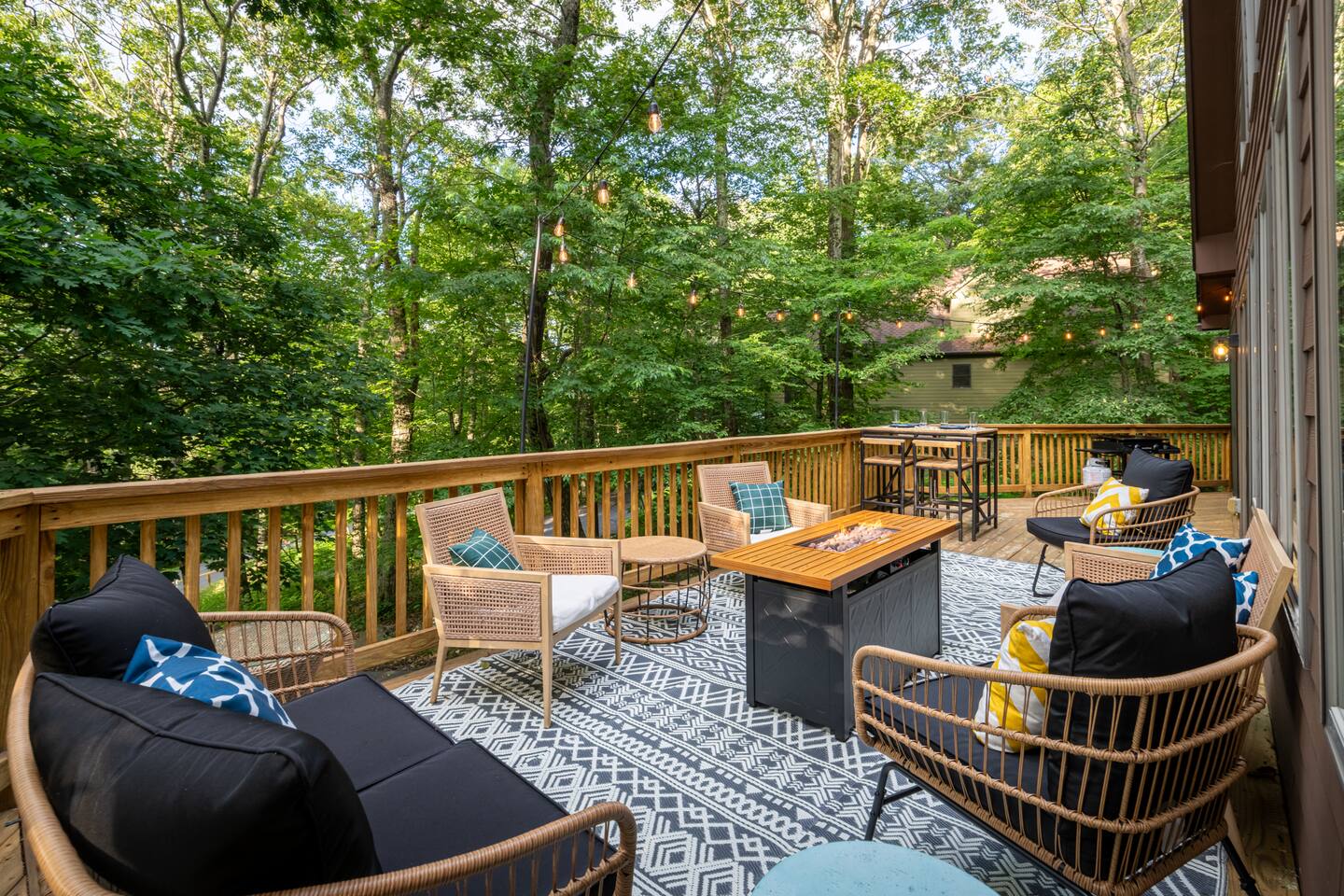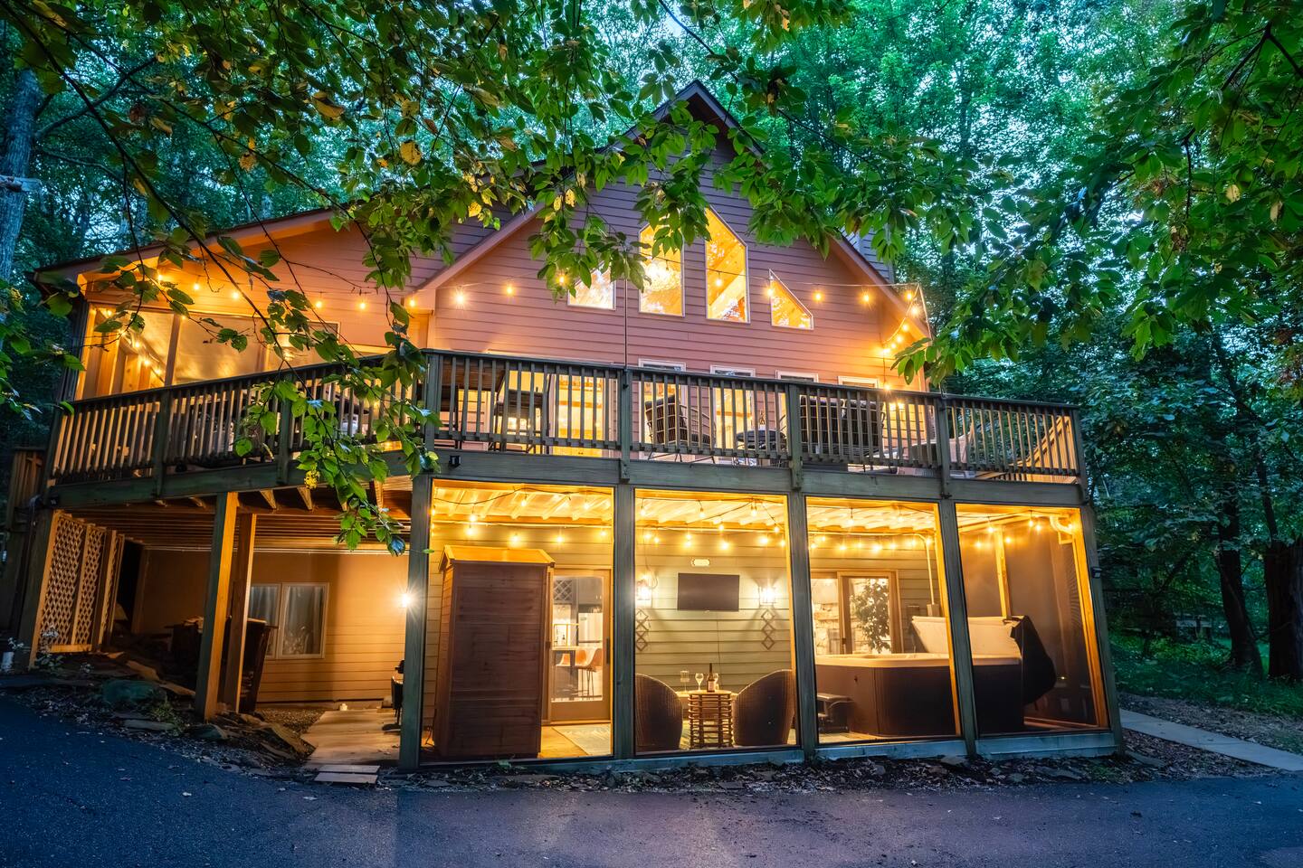 "Blue Ridge Bliss" is thoughtfully appointed to ensure your stay is enveloped in comfort: ✔ 2 Homes with plenty of space for large gatherings of friends and families ✔ Inviting great rooms with 3 ambient wood-burning fireplaces ✔ 2 Modern kitchens and a kitchenette, recently updated, complete with culinary essentials ✔ Multiple indoor and outdoor dining spaces with plenty of seating for everyone ✔ 4 bedrooms with king beds (2 with en suites) ✔ 3 secondary queen bedrooms that offer peaceful relaxation ✔ 2 playful bunk bedrooms that offer a fun space for the kids to relax. ✔ Hot tub and Sauna in screened in and covered patio accessible from the basement and an additional hot tub under the trees at Quisisana South ✔ Game room with Arcade games, Ring Toss game and Shuffleboard, additional screened in game room with ping pong, darts and foosball at Quisisana South ✔ Wet bar in basement with HD television and space to play cards ✔ Outdoor firepits with plenty of seating ✔ Tetherball and a Disc Golf hole for outdoor tournaments Guest access Unlock the full "Blue Ridge Bliss" experience with these exclusive features: ✔ Effortless check-in with keyless entry ✔ Expansive decks for leisurely outdoor moments ✔ Private hot tubs and sauna to unwind under the stars ✔ Gameroom with shuffleboard, darts and arcade games ✔ Exclusive screened in exterior game room for entertainment and fun (accessible via exterior staircase) Neighborhood Explore the enchanting surroundings of "Blue Ridge Bliss": ✔ Traverse the family-friendly Old Appalachian Trail for a nature adventure ✔ Engage in winter sports or golf, right at your doorstep ✔ Delight in local cuisine or indulge in a spa day nearby ✔ Immerse yourself in the vibrant local culture and outdoor activities Your mountain sanctuary awaits at "Blue Ridge Bliss" Book now and step into a storybook setting that's sure to become a cherished chapter in your life's adventures.