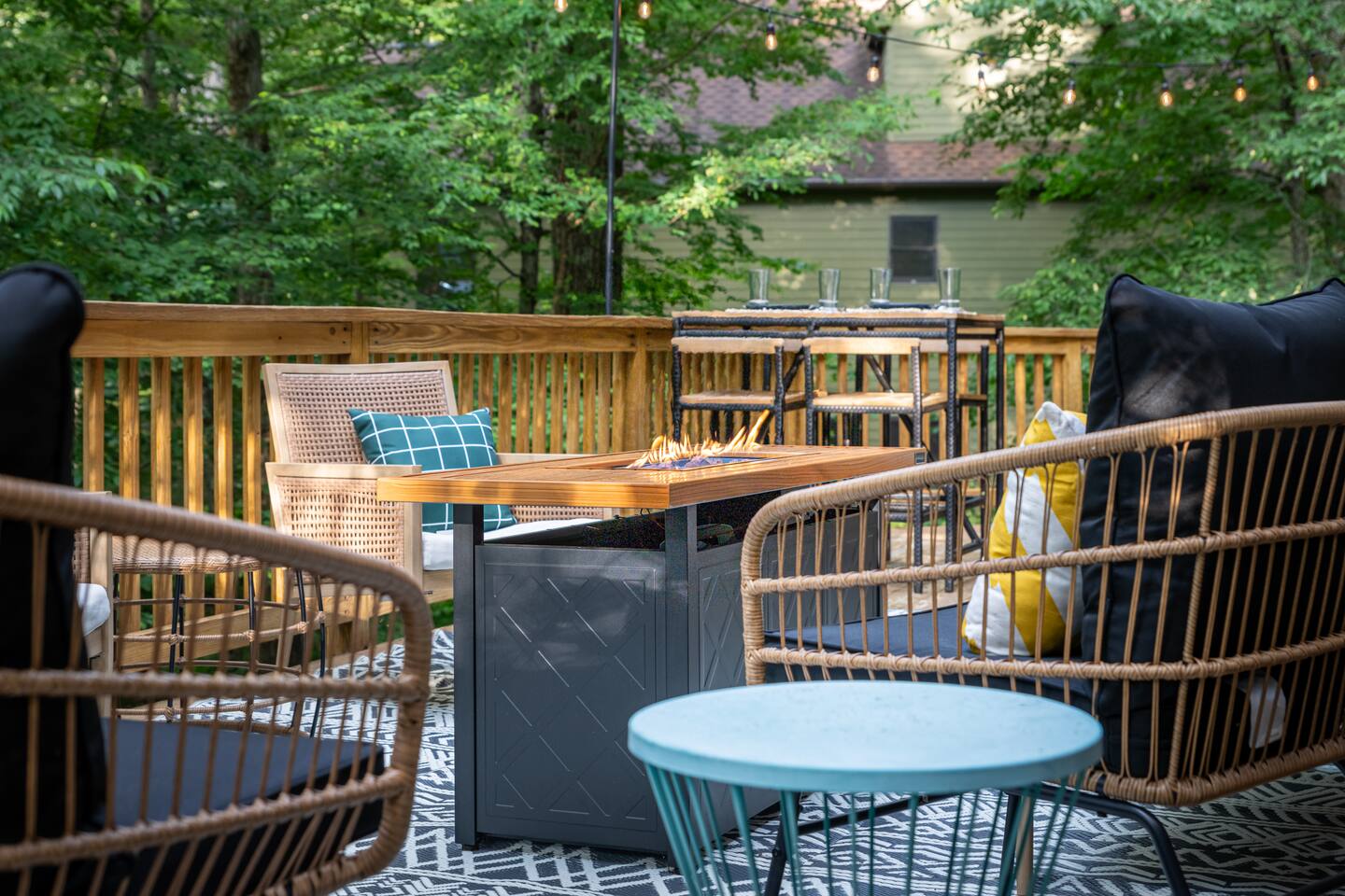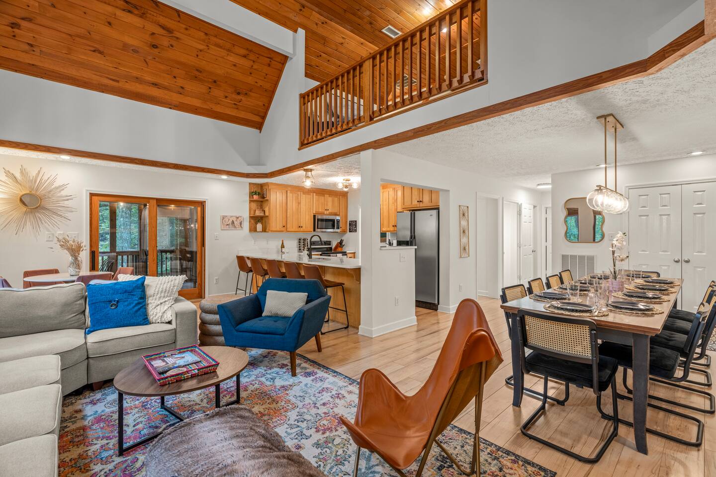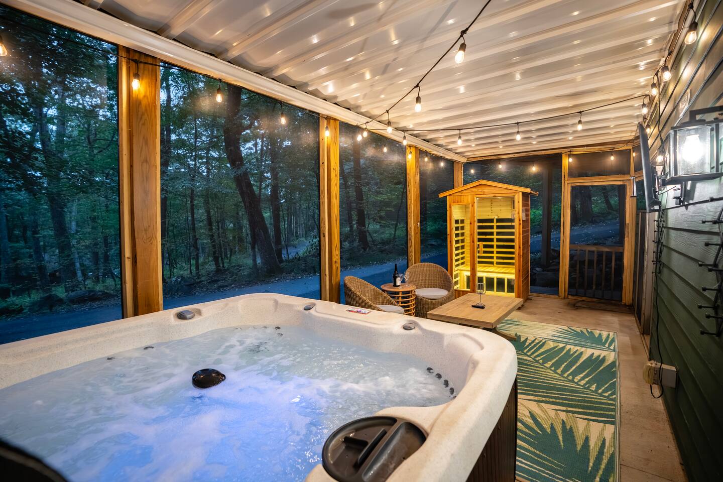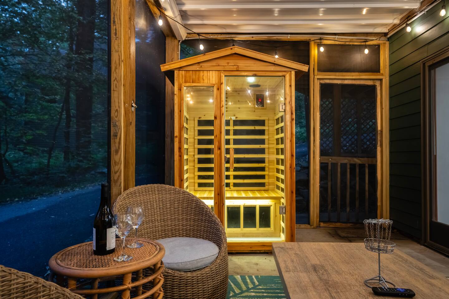 "Blue Ridge Bliss" is thoughtfully appointed to ensure your stay is enveloped in comfort: ✔ 2 Homes with plenty of space for large gatherings of friends and families ✔ Inviting great rooms with 3 ambient wood-burning fireplaces ✔ 2 Modern kitchens and a kitchenette, recently updated, complete with culinary essentials ✔ Multiple indoor and outdoor dining spaces with plenty of seating for everyone ✔ 4 bedrooms with king beds (2 with en suites) ✔ 3 secondary queen bedrooms that offer peaceful relaxation ✔ 2 playful bunk bedrooms that offer a fun space for the kids to relax. ✔ Hot tub and Sauna in screened in and covered patio accessible from the basement and an additional hot tub under the trees at Quisisana South ✔ Game room with Arcade games, Ring Toss game and Shuffleboard, additional screened in game room with ping pong, darts and foosball at Quisisana South ✔ Wet bar in basement with HD television and space to play cards ✔ Outdoor firepits with plenty of seating ✔ Tetherball and a Disc Golf hole for outdoor tournaments Guest access Unlock the full "Blue Ridge Bliss" experience with these exclusive features: ✔ Effortless check-in with keyless entry ✔ Expansive decks for leisurely outdoor moments ✔ Private hot tubs and sauna to unwind under the stars ✔ Gameroom with shuffleboard, darts and arcade games ✔ Exclusive screened in exterior game room for entertainment and fun (accessible via exterior staircase) Neighborhood Explore the enchanting surroundings of "Blue Ridge Bliss": ✔ Traverse the family-friendly Old Appalachian Trail for a nature adventure ✔ Engage in winter sports or golf, right at your doorstep ✔ Delight in local cuisine or indulge in a spa day nearby ✔ Immerse yourself in the vibrant local culture and outdoor activities Your mountain sanctuary awaits at "Blue Ridge Bliss" Book now and step into a storybook setting that's sure to become a cherished chapter in your life's adventures.
