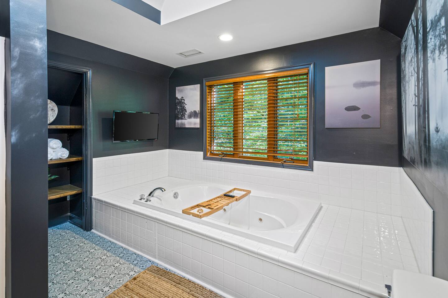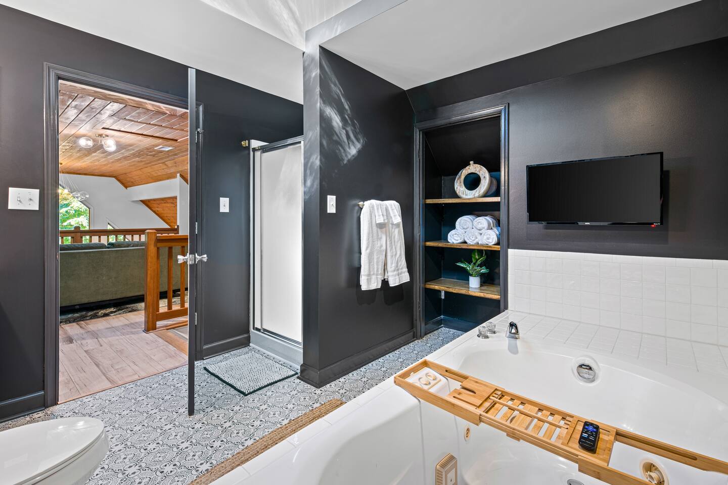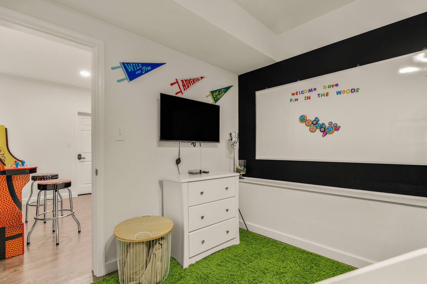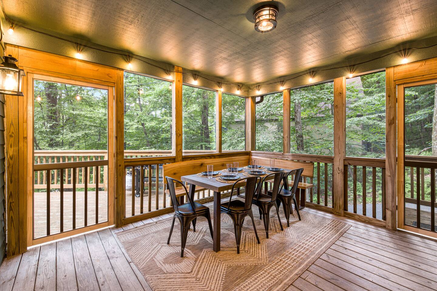 "Blue Ridge Bliss" is thoughtfully appointed to ensure your stay is enveloped in comfort: ✔ 2 Homes with plenty of space for large gatherings of friends and families ✔ Inviting great rooms with 3 ambient wood-burning fireplaces ✔ 2 Modern kitchens and a kitchenette, recently updated, complete with culinary essentials ✔ Multiple indoor and outdoor dining spaces with plenty of seating for everyone ✔ 4 bedrooms with king beds (2 with en suites) ✔ 3 secondary queen bedrooms that offer peaceful relaxation ✔ 2 playful bunk bedrooms that offer a fun space for the kids to relax. ✔ Hot tub and Sauna in screened in and covered patio accessible from the basement and an additional hot tub under the trees at Quisisana South ✔ Game room with Arcade games, Ring Toss game and Shuffleboard, additional screened in game room with ping pong, darts and foosball at Quisisana South ✔ Wet bar in basement with HD television and space to play cards ✔ Outdoor firepits with plenty of seating ✔ Tetherball and a Disc Golf hole for outdoor tournaments Guest access Unlock the full "Blue Ridge Bliss" experience with these exclusive features: ✔ Effortless check-in with keyless entry ✔ Expansive decks for leisurely outdoor moments ✔ Private hot tubs and sauna to unwind under the stars ✔ Gameroom with shuffleboard, darts and arcade games ✔ Exclusive screened in exterior game room for entertainment and fun (accessible via exterior staircase) Neighborhood Explore the enchanting surroundings of "Blue Ridge Bliss": ✔ Traverse the family-friendly Old Appalachian Trail for a nature adventure ✔ Engage in winter sports or golf, right at your doorstep ✔ Delight in local cuisine or indulge in a spa day nearby ✔ Immerse yourself in the vibrant local culture and outdoor activities Your mountain sanctuary awaits at "Blue Ridge Bliss" Book now and step into a storybook setting that's sure to become a cherished chapter in your life's adventures.