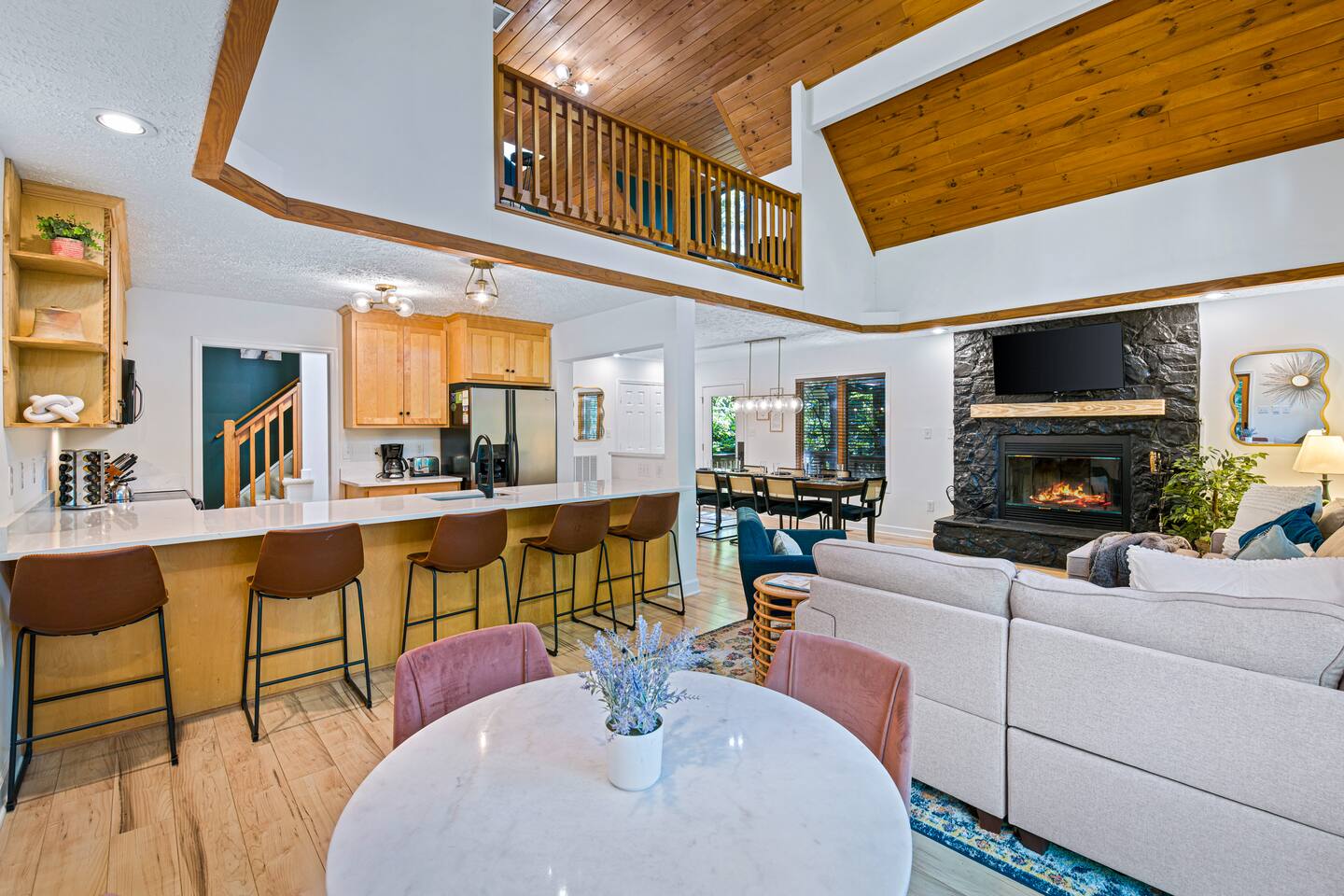 **The number of guests must match the reservation. Reservations made under false pretenses are subject to cancellation with no refund.** Enhance your stay with these thoughtful additions: ✔ Pet friendly! We allow up to 2 dogs with a $150/property pet fee. ✔ 2 Convenient EV chargers for eco-friendly travel ✔ Ample driveway parking for your peace of mind ✔ Fast, reliable WiFi to keep you connected ✔ Complimentary pool access to cool off during summer days (though the HOA rules stipulate no more than 6 guests per property at a time, and the permitted hours are 2-6pm) ✔ Family-friendly amenities, including a pack 'n play and high chair ✔This property is in the mountains, in a heavily wooded area. There may be bugs. ✔Please be "Bear Aware" no food or trash should be left in your vehicle or outside of the property due to bear activity in the area. ✔Important: Quisisana South (3 bedroom home) does not have AC, however every room has a ceiling fan and we do provide fans for each room in the summer. Pleasant Point (6 bedroom home) does have AC throughout. ✔Please be aware that there are exterior security cameras in place. Thank you. The home is stocked with a starter supply of paper products and toiletries to get going, but it is recommended that you bring or purchase more to last for the duration of your stay. High speed Wifi is an amenity that is provided at the property but we cannot guarantee functionality for issues that are beyond our control. Potential Wifi outages will always be handled in a timely manner and resolved to the best of our ability. Unfortunately it is not guaranteed that our solutions will fix the issue and refunds will not be given for Wifi malfunctions.