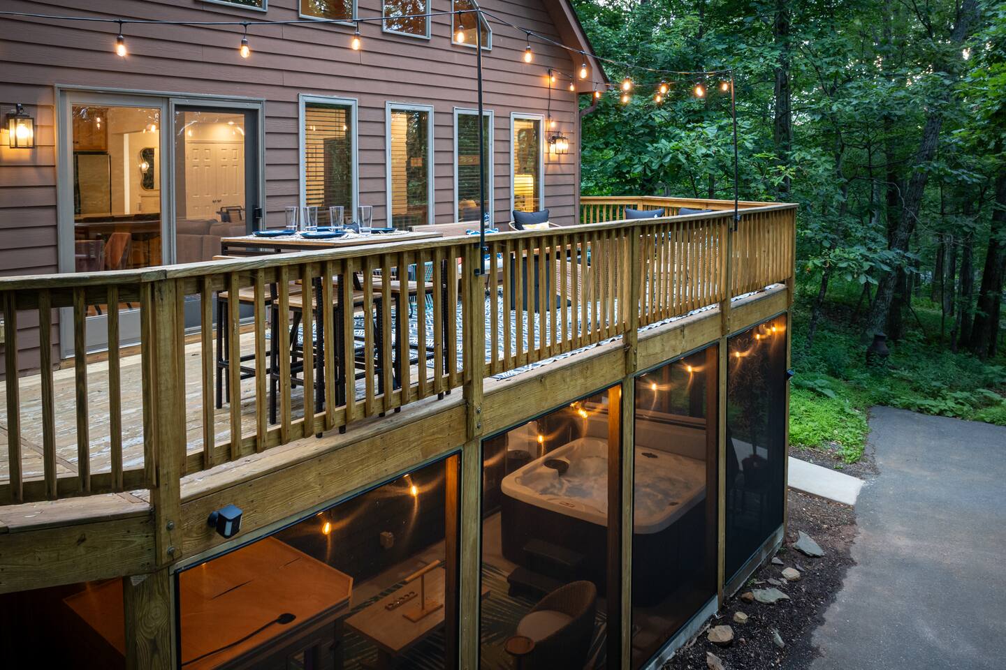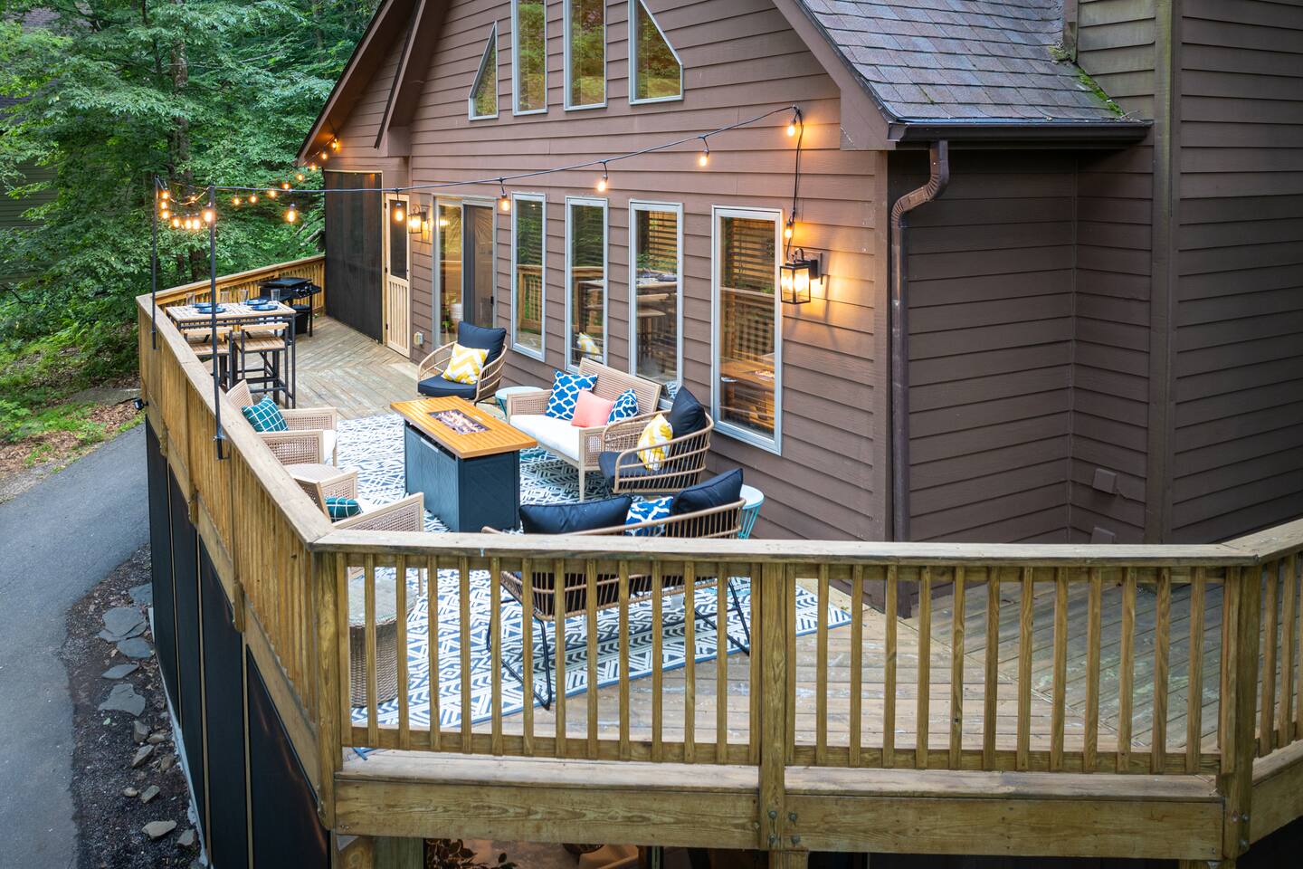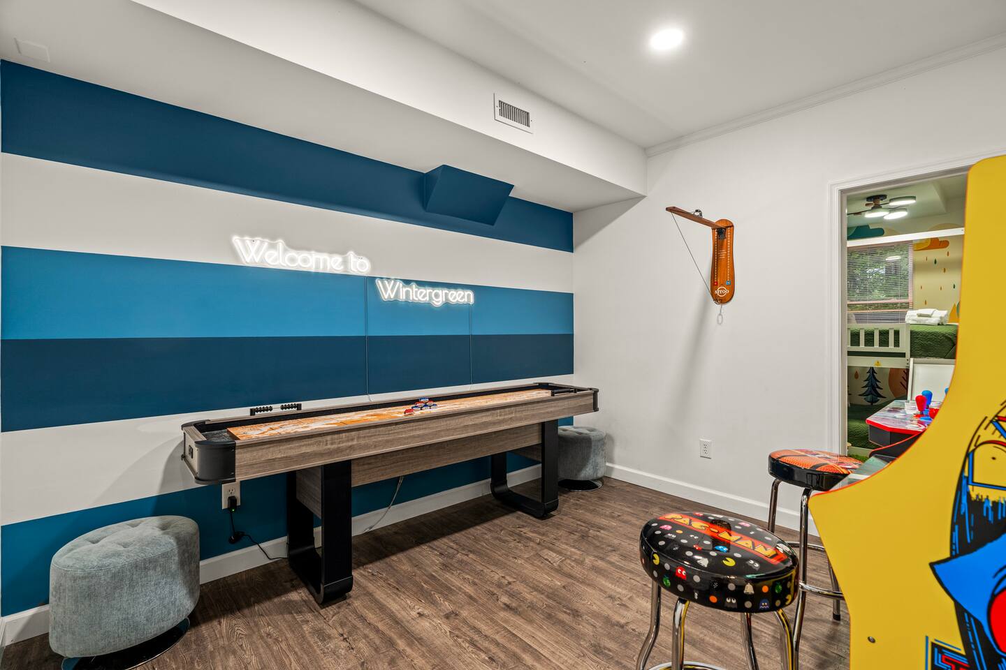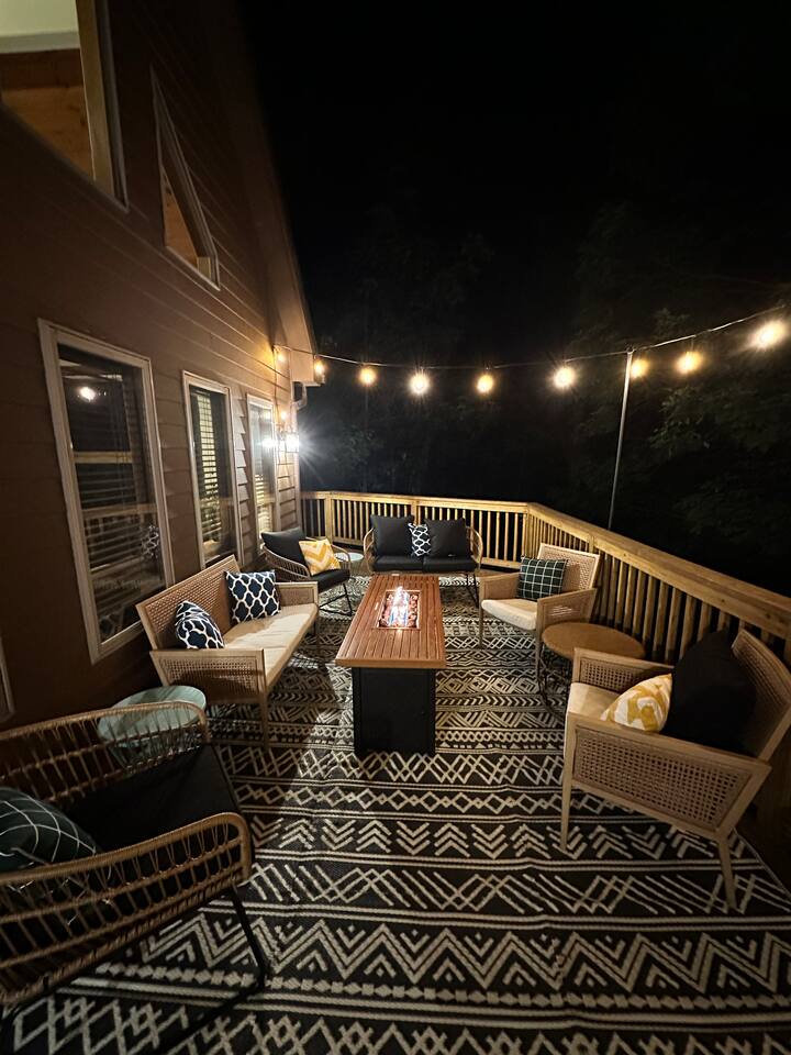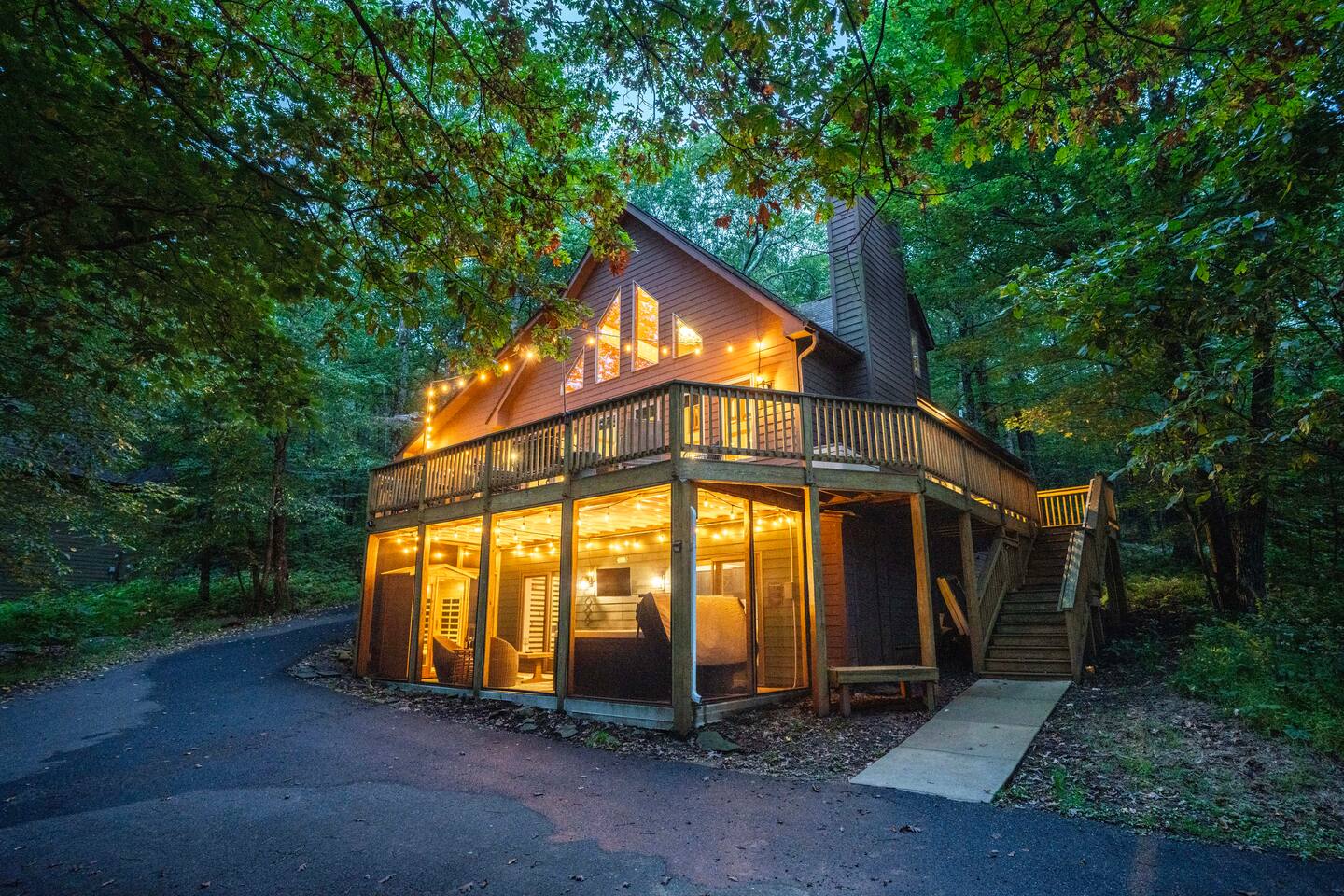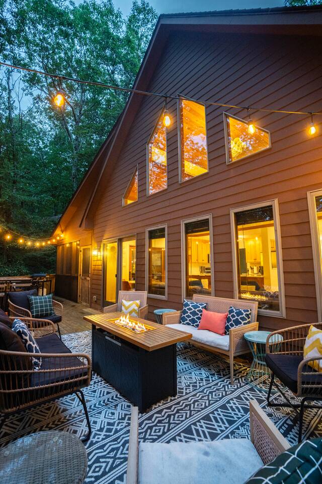 Welcome to Pleasant Point at Wintergreen Resort — a HGTV-worthy mountain escape designed for big gatherings, family fun, and year-round relaxation. What You’ll LOVE! ✔ Hot Tub & Sauna — Screened-in, covered, and perfect in any season ✔ Game Room — Shuffleboard, arcade games, ring toss & retro NES ✔ Great Room — Vaulted ceilings, cozy fireplace & plenty of seating ✔ Chef’s Kitchen — Recently updated with all essentials + bar seating for 5 ✔ Firepit Nights — Outdoor seating for 12 with string-light ambiance ✔ Family Fun — Kids’ bunk with slide, tetherball, cornhole, board games ✔ Resort Access — Skiing, trails, sports, dining & more just minutes away Sleeping Arrangements (Sleeps 16+) 3 King Bedrooms (1 w/ ensuite bath) 2 Queen Bedrooms 1 Bunk Room (Twin/Full with slide — kid favorite!) Extra pillows, blankets & flexible sleeping spaces available Spaces for Everyone Dining: 10 at main table + 5 at bar + 4 at extra table + screened porch dining for 10 Outdoor Decks: Expansive, furnished & ready for group gatherings Wet Bar: With HDTV and card table — ideal for adult game nights Outdoor Fun Tetherball & Cornhole for friendly competition Blackstone Griddle for group cooking Firepit Evenings under the stars The Location 📍 Steps from the Old Appalachian Trail 📍 5 min to Shamokin Springs Loop (family-friendly hike) 📍 Close to skiing, golf, wineries, breweries & Blue Ridge Parkway Guest Access ✔ Keyless Entry for stress-free arrivals ✔ Free Parking + EV Charger ✔ Full use of all indoor & outdoor amenities