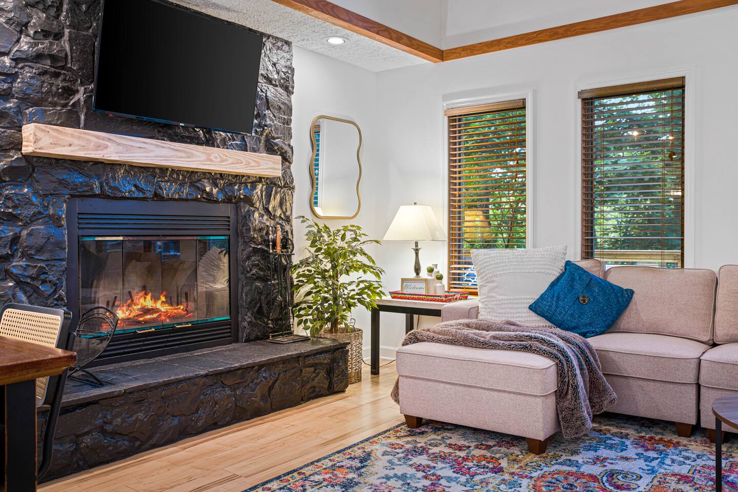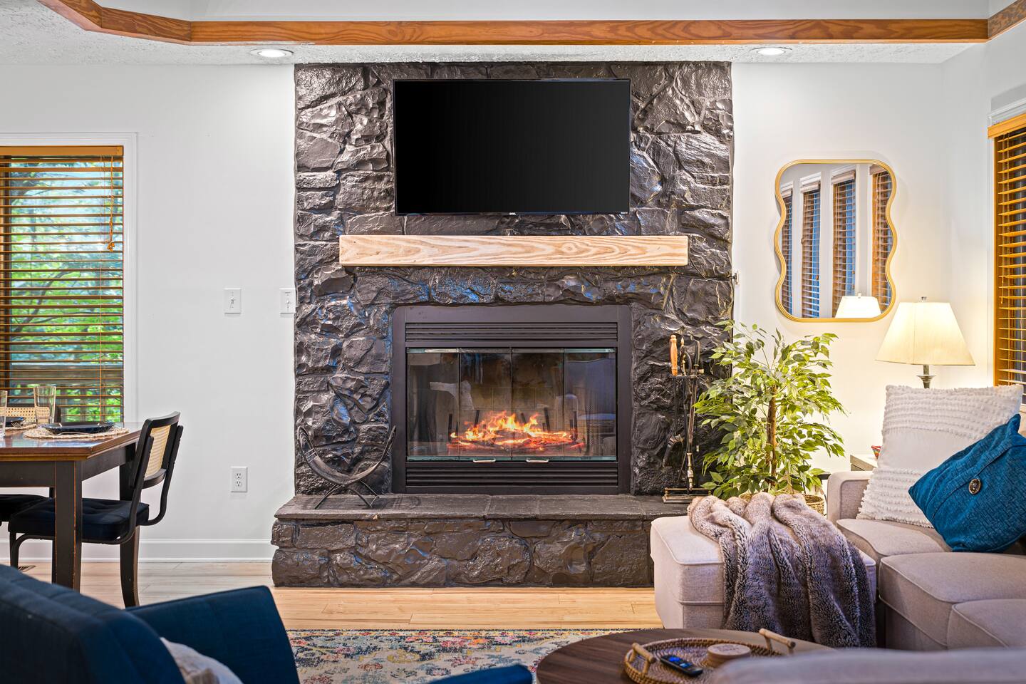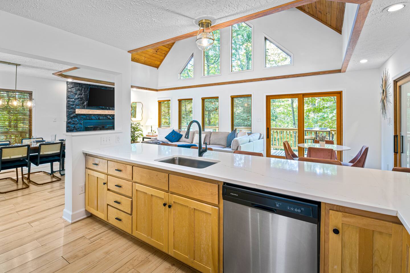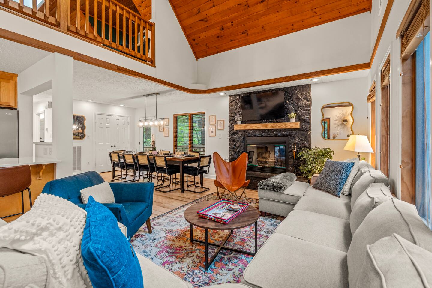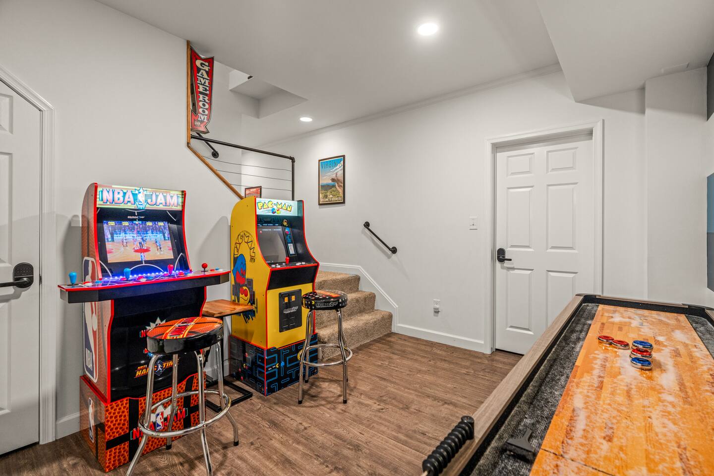 Welcome to Pleasant Point at Wintergreen Resort — a HGTV-worthy mountain escape designed for big gatherings, family fun, and year-round relaxation. What You’ll LOVE! ✔ Hot Tub & Sauna — Screened-in, covered, and perfect in any season ✔ Game Room — Shuffleboard, arcade games, ring toss & retro NES ✔ Great Room — Vaulted ceilings, cozy fireplace & plenty of seating ✔ Chef’s Kitchen — Recently updated with all essentials + bar seating for 5 ✔ Firepit Nights — Outdoor seating for 12 with string-light ambiance ✔ Family Fun — Kids’ bunk with slide, tetherball, cornhole, board games ✔ Resort Access — Skiing, trails, sports, dining & more just minutes away Sleeping Arrangements (Sleeps 16+) 3 King Bedrooms (1 w/ ensuite bath) 2 Queen Bedrooms 1 Bunk Room (Twin/Full with slide — kid favorite!) Extra pillows, blankets & flexible sleeping spaces available Spaces for Everyone Dining: 10 at main table + 5 at bar + 4 at extra table + screened porch dining for 10 Outdoor Decks: Expansive, furnished & ready for group gatherings Wet Bar: With HDTV and card table — ideal for adult game nights Outdoor Fun Tetherball & Cornhole for friendly competition Blackstone Griddle for group cooking Firepit Evenings under the stars The Location 📍 Steps from the Old Appalachian Trail 📍 5 min to Shamokin Springs Loop (family-friendly hike) 📍 Close to skiing, golf, wineries, breweries & Blue Ridge Parkway Guest Access ✔ Keyless Entry for stress-free arrivals ✔ Free Parking + EV Charger ✔ Full use of all indoor & outdoor amenities